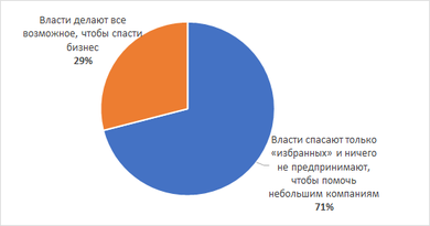 71% респондентов полагает, что спасают только «избранных» и ничего не предпринимают, чтобы помочь небольшим компаниям.