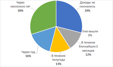 30% респондентов считают, что на докризисные показатели они выйдут только через несколько лет, 16% – примерно через год.