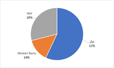 57% допускают возможность открытия нового бизнеса, 29% не готовы к новым направлениям. 14% серьезно задумываются о запуске нового проекта.