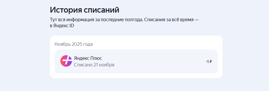 Перед отключением зайдите в личный кабинет на сайте plus.yandex.ru и проверьте дату следующего списания, а также способ оплаты (какая карта привязана). Аккаунт с активной подпиской выделен цветной обводкой. Это поможет понять, сколько у вас осталось времени и с какого именно источника уходят деньги.