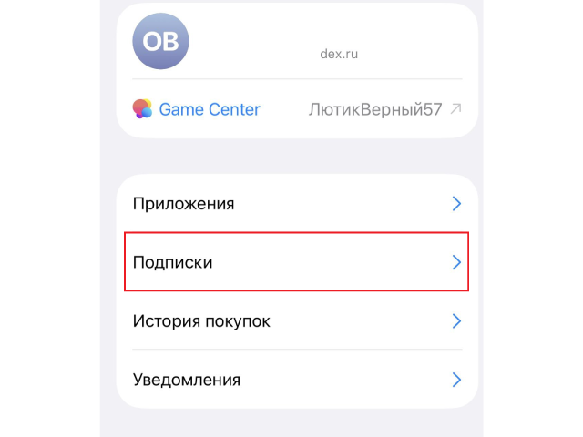Откройте магазин приложений на iPhone, нажмите на своё имя (Apple ID), затем выберите «Подписки». Найдите в списке Яндекс Плюс и нажмите «Отменить подписку».