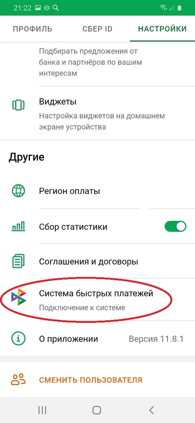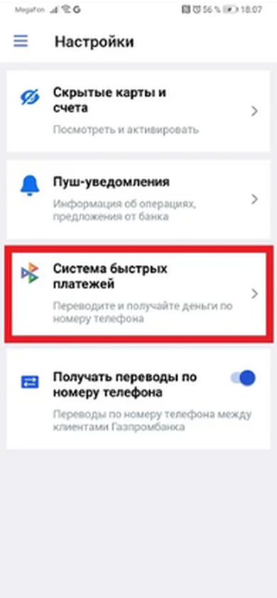 3. Внизу найти пункт Система быстрых платежей, нажать на него.