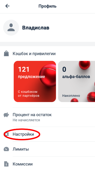 2. Нажать на профиль (левый верхний угол), выбрать Настройки.