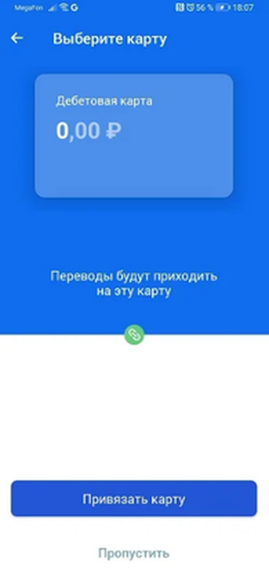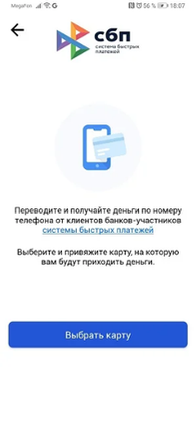 4. Далее необходимо нажать Выбрать карту и привязать нужную карту.