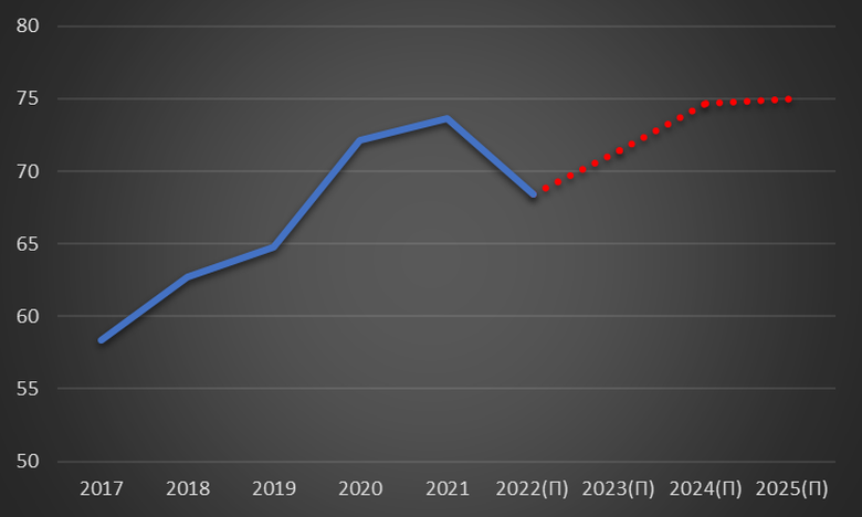 Согласно макроэкономическому опросу Банка России, проведенному в октябре 2022 года, аналитики ожидают в текущем году курс рубля на уровне 68,4 рубля, в 2023–2025 годах отечественная валюта будет слабеть и опустится до 75,0 рубля.