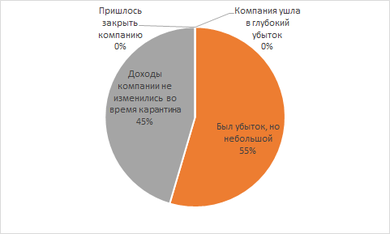 55% опрошенных МФО отметили, что за время карантина компания получила убыток, но его размер небольшой.