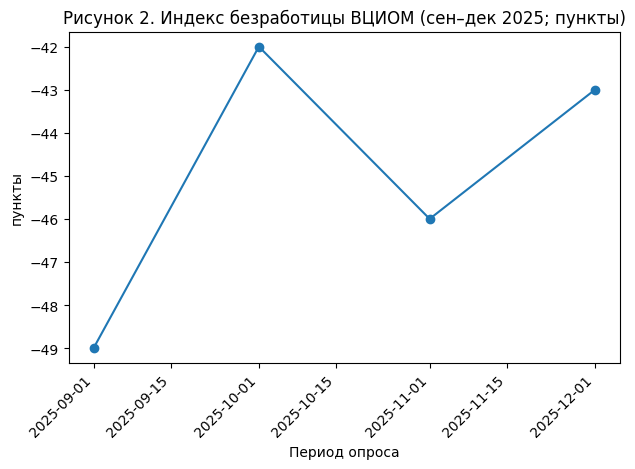 Для анализа субъективного восприятия ситуации используется индекс безработицы ВЦИОМ. Он основан на вопросе о том, сколько людей из близкого окружения респондента потеряли работу за последние 2–3 месяца. Индекс рассчитывается как баланс положительных и отрицательных ответов и может принимать значения от −100 до +100.