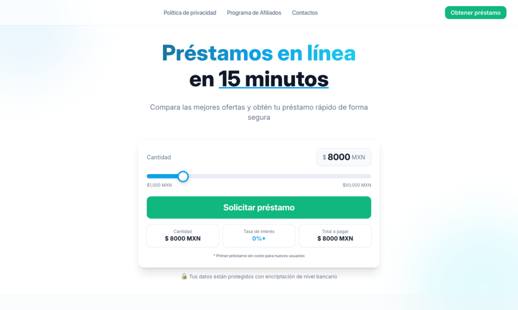 Binixo Mexico permite acceder a prestamos en linea de hasta $25,000 MXN con un proceso que toma alrededor de 2 minutos. Llenas un formulario, la plataforma analiza tu perfil y te muestra las opciones disponibles. Tu decides cual aceptar. Algunos socios de Binixo ofrecen tasas desde 0.01% para primer credito, aunque la tasa anual puede ir del 4% al 916% dependiendo del prestamista.