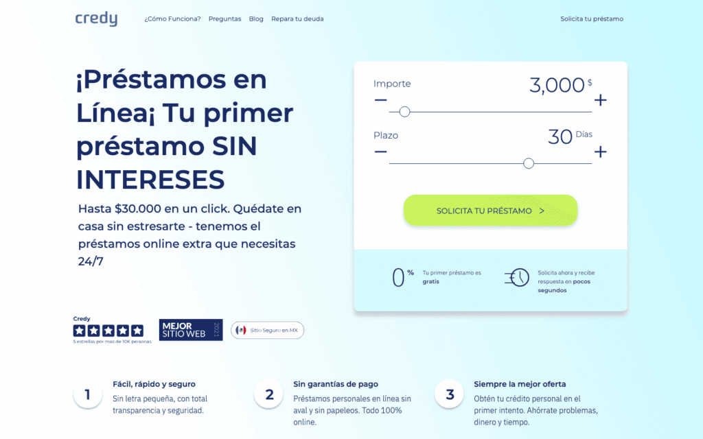Para el primer préstamo Credy gratis, algunas financieras asociadas ofrecen tasa de 0% (CAT 0%), lo que permite probar el servicio sin costo adicional. Esta promoción varía según disponibilidad del prestamista.