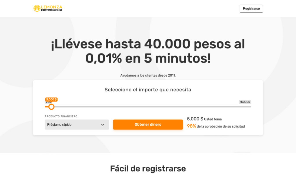 ¿Necesitas dinero antes de la quincena y los bancos te piden semanas de trámites? Lemonza lleva desde 2011 conectando a personas en México con ofertas de préstamo en línea adaptadas a su perfil. No es un banco ni una financiera tradicional: funciona como intermediario que compara propuestas de múltiples prestamistas y te muestra la que tiene mayor probabilidad de aprobación.