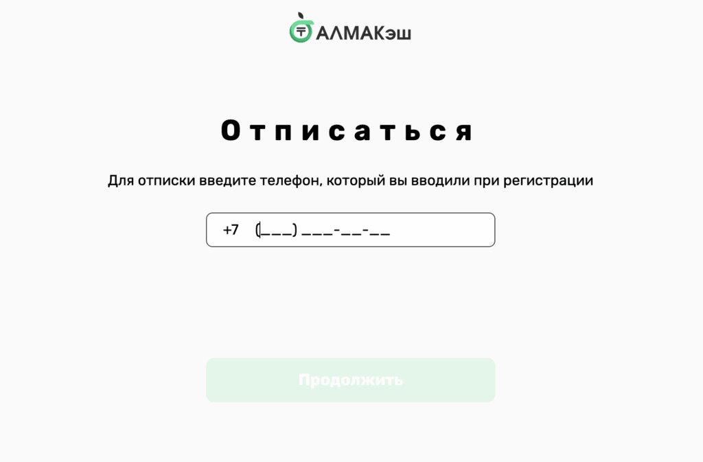 Перейдите на страницу отмены подписки. Введите номер телефона для подтверждения и нажмите кнопку «Отписаться».