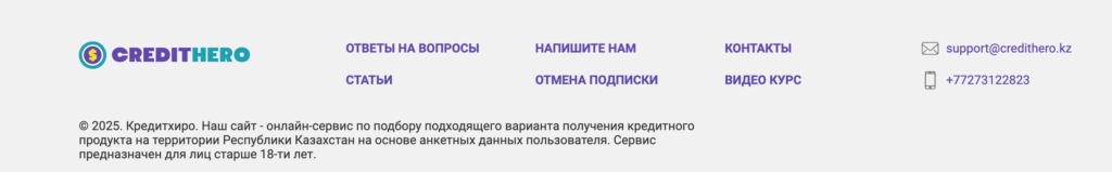 - Перейдите на сайт Credit Hero и пролистайте до самого конца.