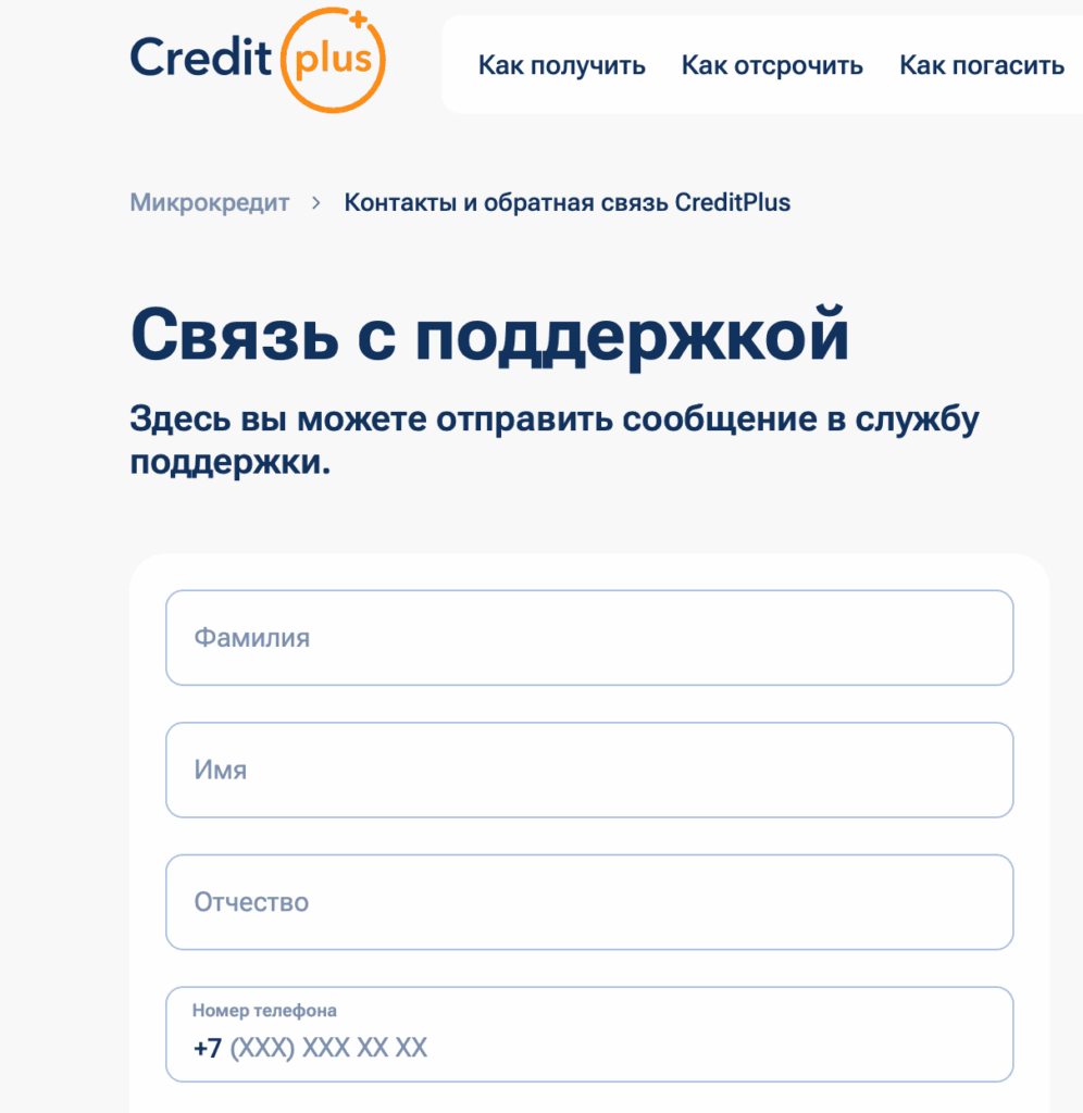 Помимо телефонных консультаций, Credit Plus предоставляет альтернативные каналы связи, которые подходят для письменных обращений, жалоб и запросов документов.