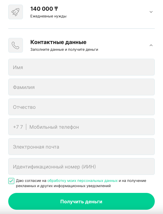 Для регистрации на сайте Crezu.kz пользователю необходимо указать номер телефона и заполнить анкету с персональными данными. После подтверждения номера создаётся личный кабинет, в котором отображается информация о заявке и предложениях партнеров.