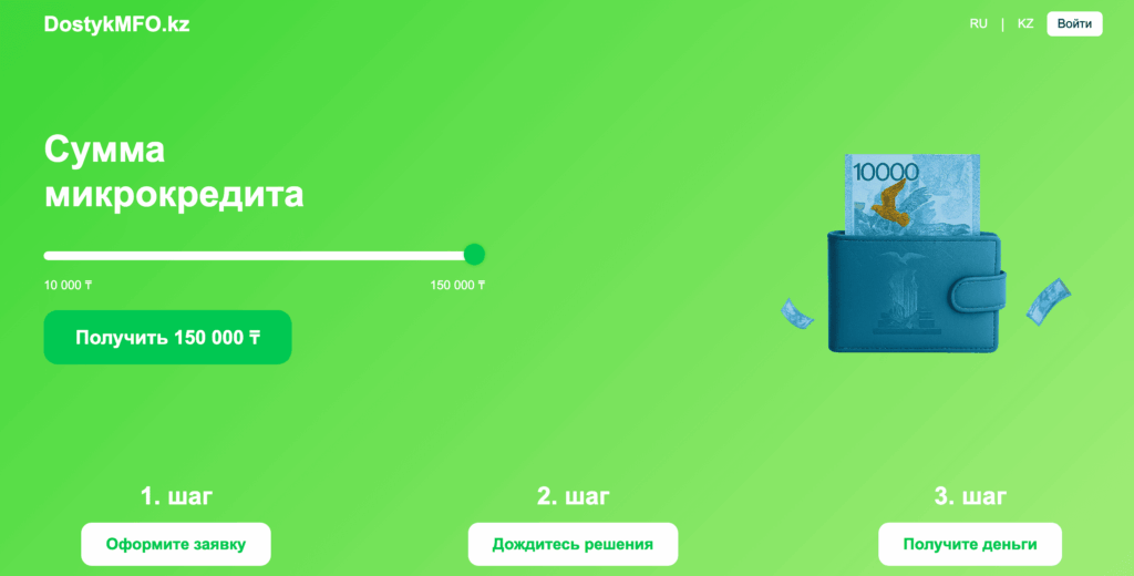ТОО «Микрофинансовая организация «Dostyk» — действующая микрофинансовая организация. Она предоставляет краткосрочные микрозаймы физическим лицам с простым онлайн-оформлением по минимальному набору документов, главным образом через собственный сайт, адаптированный под быстрый подбор и одобрение займов. Организация имеет лицензию на осуществление микрофинансовой деятельности в Казахстане и действует в рамках законодательства страны.