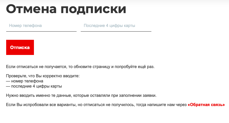 - страницы отписки
