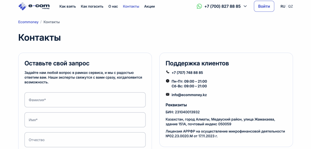 Контакты Ecommoney KZ