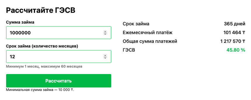 Расчет займа Элит-Кредит KZ