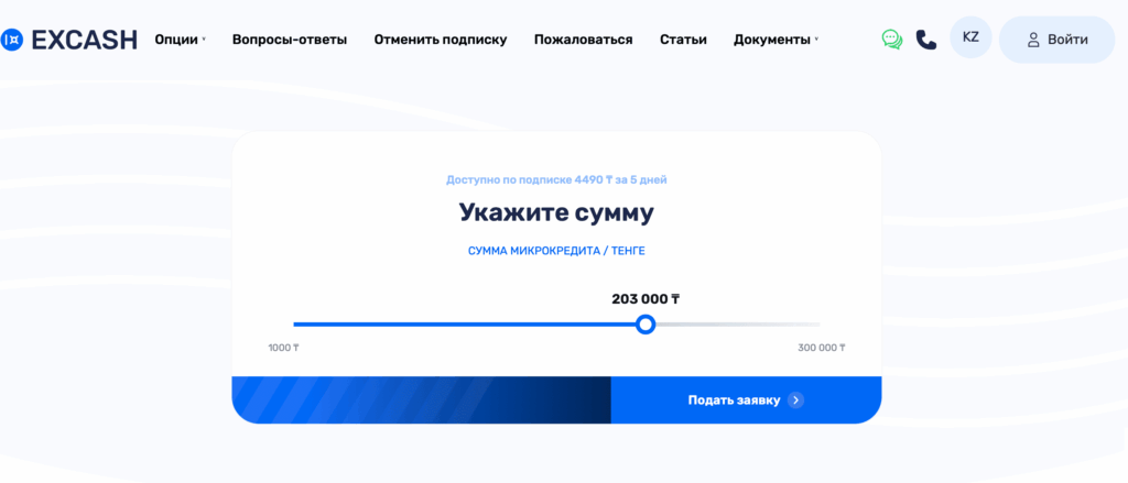 Сервис Excash KZ предоставляет платную подписку на подбор микрокредитов. Стоимость услуги составляет 4 490 тенге за 5 календарных дней. Списание производится автоматически с банковской карты пользователя, если подписка не была отменена.