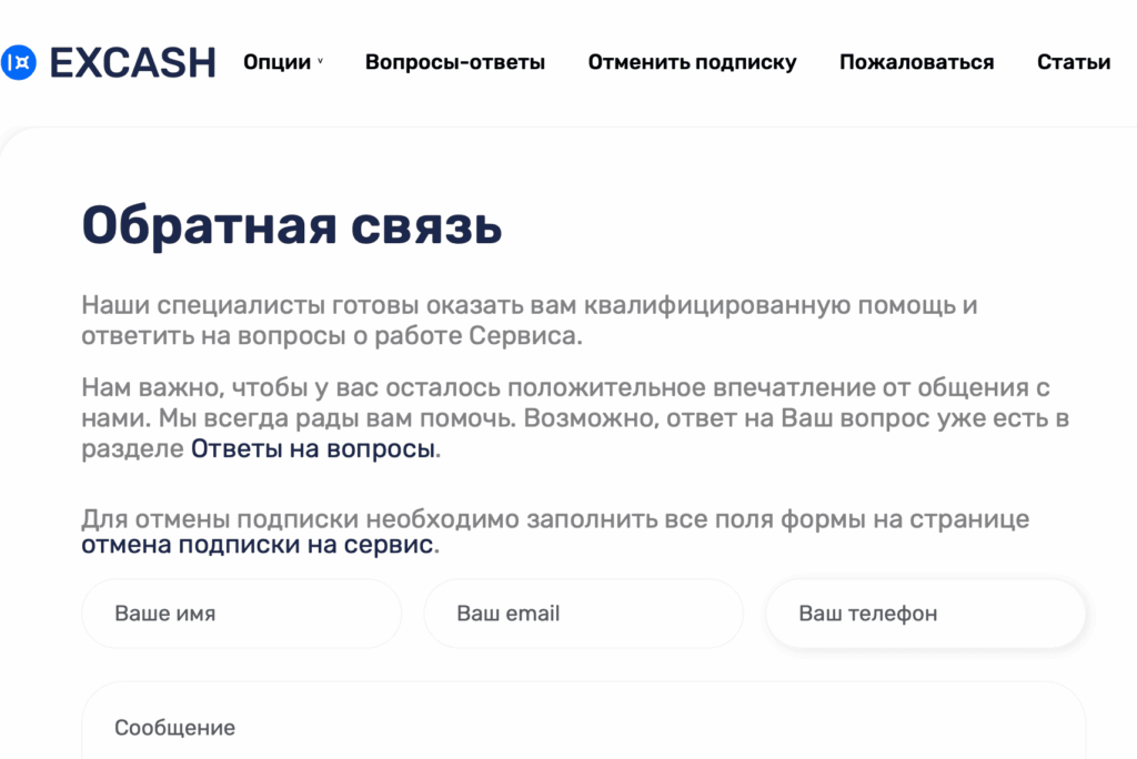 На официальном сайте Excash KZ указаны актуальные контактные данные, кроме того, доступна форма обратной связи. Чтобы отправить обращение, пользователю достаточно указать: