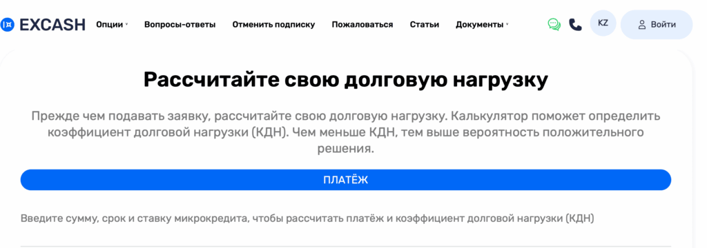 Excash KZ — онлайн-сервис подбора микрокредитов, предназначенный для упрощения поиска и сравнения предложений от микрофинансовых организаций. Платформа предоставляет пользователям единый интерфейс для взаимодействия с сервисом и получения информации по доступным вариантам займов, а все основные действия выполняются в дистанционном формате через официальный сайт.