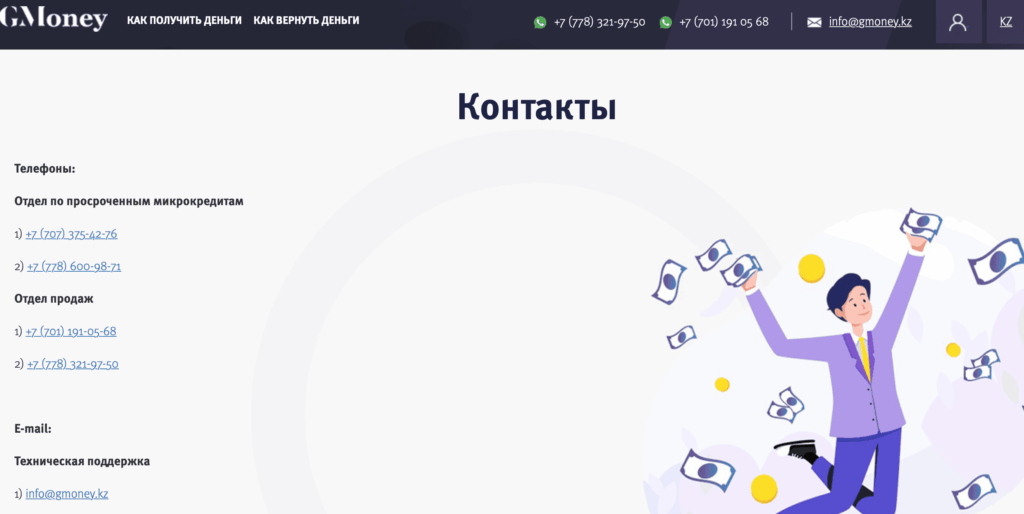 - Отдел по просроченным микрокредитам — collection@gmoney.kz