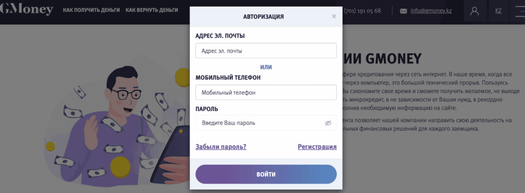 - Почта — info@gmoney.kz