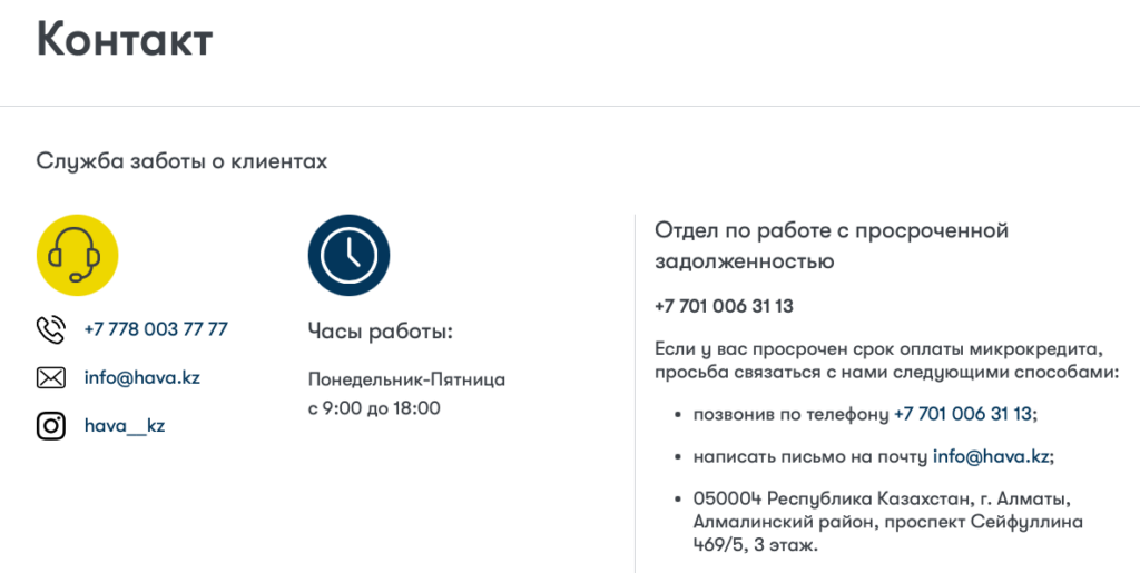 Hava — микрофинансовая организация, предоставляющая онлайн-займы гражданам Республики Казахстан. Оформление кредита происходит дистанционно через официальный сайт: клиент заполняет анкету, проходит идентификацию и получает средства на банковскую карту. Компания работает в сегменте краткосрочного кредитования и ориентирована на быстрое рассмотрение заявок. При регистрации или подаче заявки могут подключаться дополнительные платные сервисы либо информационные подписки. Если такие услуги больше не нужны, их можно отключить самостоятельно или через службу поддержки.