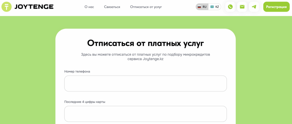 Если вы попали в ситуацию, когда форма отписки недоступна, например, случился технический сбой, или появились другие причины, есть способ отписаться напрямую через службу поддержки Джойтенге.