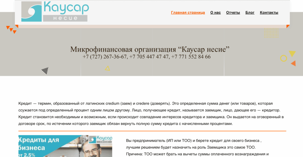 МФО «Каусар Несие» работает с 2011 года в Казахстане и предлагает как онлайн-микрозаймы, так и залоговое финансирование. Компания зарегистрирована в Алматы, лицензирована и обслуживает физических и юридических лиц, предоставляя гибкие условия по сумме, сроку и ставке в зависимости от профиля клиента и типа займа.