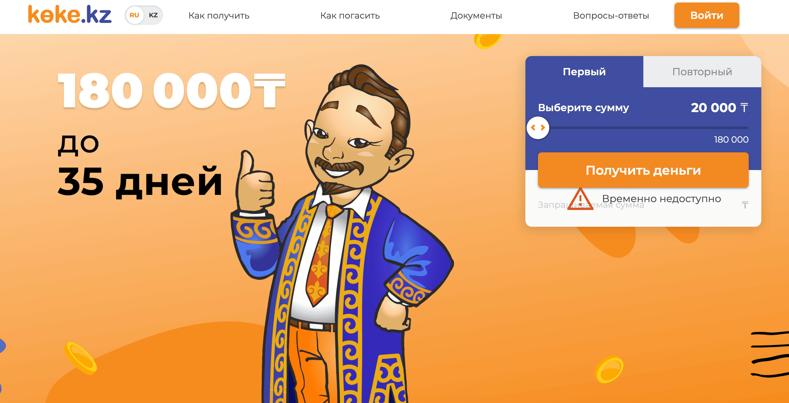 - Сумма: от 20 000 до 180 000 тенге