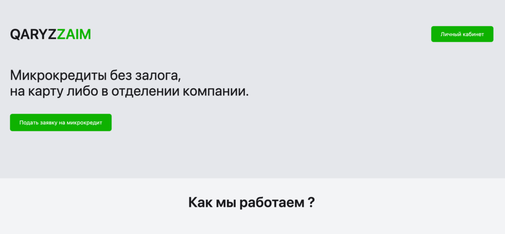 QARYZZAIM — микрофинансовая организация, действующая в Казахстане под брендом QARYZZAIM и юридически оформленная как ТОО «МФО «Мега Кредит»». Компания выдает онлайн-микрозаймы без залога, ориентирована на быстрые кредиты «до зарплаты».
