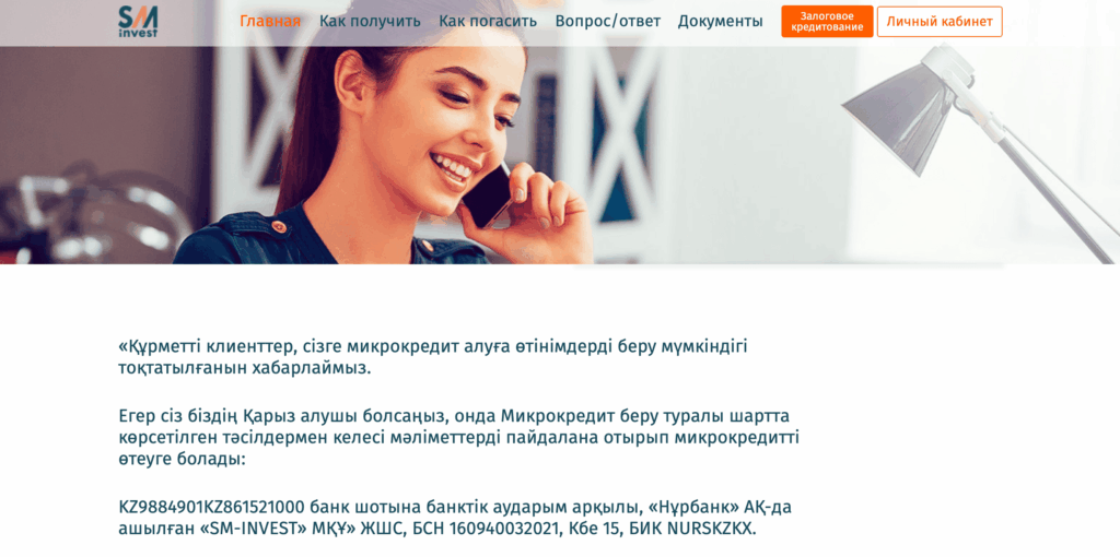 | Юридическое название | ТОО МФО "СМ Инвест" |