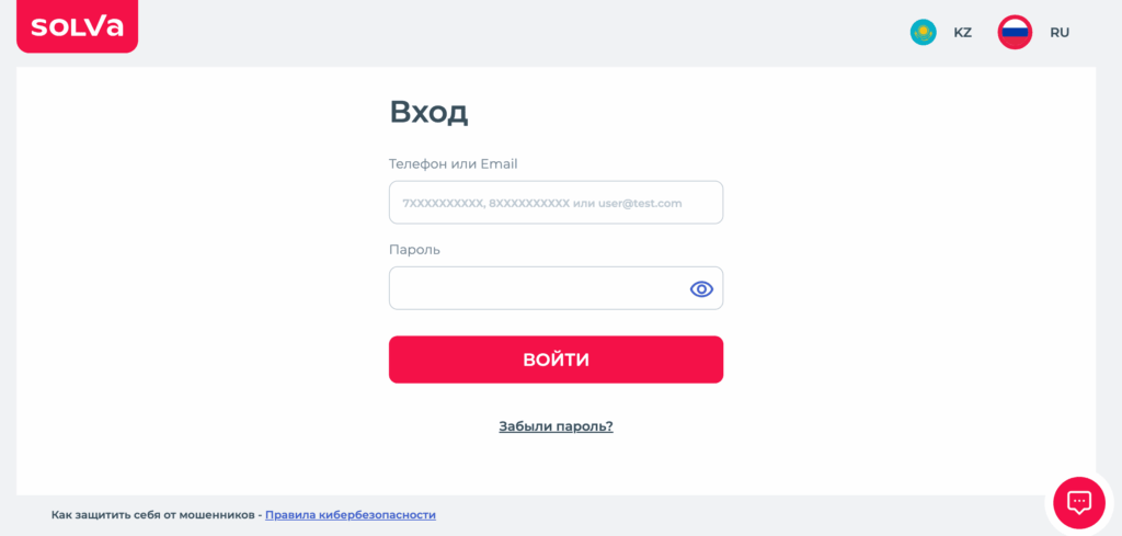 Вход в личный кабинет Solva выполняется по номеру телефона, указанному при регистрации, и паролю.