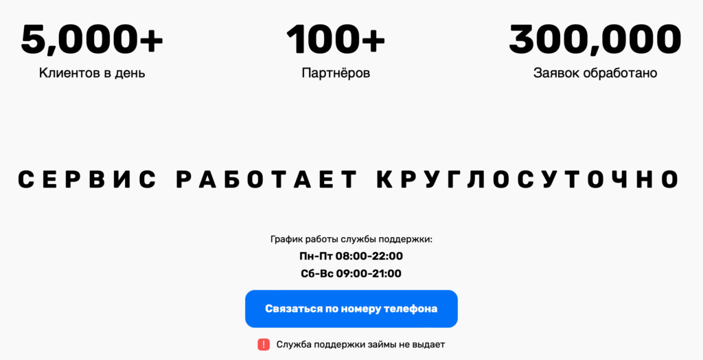 Для связи с операторами СразуЗайм предусмотрен бесплатный телефон горячей линии: