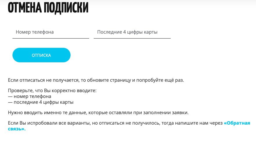 Если вы столкнулись со сложностями при самостоятельной отмене, сайт предлагает альтернативный путь. В том же разделе FAQ указано: можно обратиться через форму обратной связи на странице «Обратная связь».
