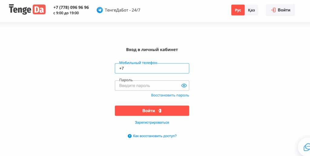 Как войти в личный кабинет TengeDa