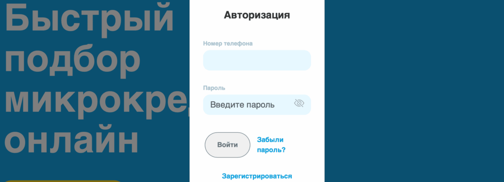 Регистрация учетной записи происходит автоматически в процессе оформления заявки на микрокредит. Личный кабинет создается после заполнения онлайн-анкеты.
