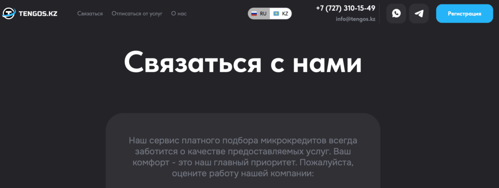 Сервис Tengos — это онлайн-платформа, предназначенная для подбора микрокредитных предложений от партнерских микрофинансовых организаций. Пользователи могут воспользоваться сервисом для ознакомления с доступными вариантами кредитования, отправки заявки и последующего взаимодействия с МФО-партнёрами. Tengos не выдает займы самостоятельно и не принимает финансовые решения, а выполняет посредническую и информационную функцию. Ниже представлены контактные данные и юридическая информация, которые могут понадобиться для связи с сервисом или подачи официальных обращений.