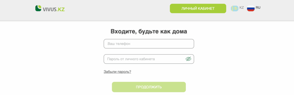 - Войти в личный кабинет, используя номер телефона и пароль.