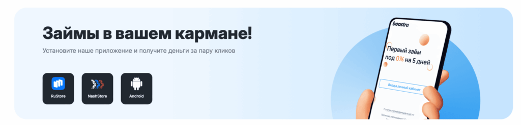 Помимо Google Play, приложение Boostra доступно в российских магазинах RuStore и NashStore. Это позволяет установить сервис даже при ограниченном доступе к зарубежным площадкам.