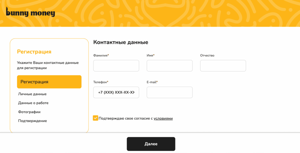 Регистрация в личном кабинете BunnyMoney