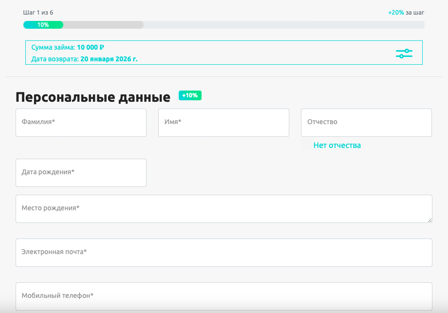 - Заполните анкету: ФИО, номер телефона, паспортные данные, информация о работе.
