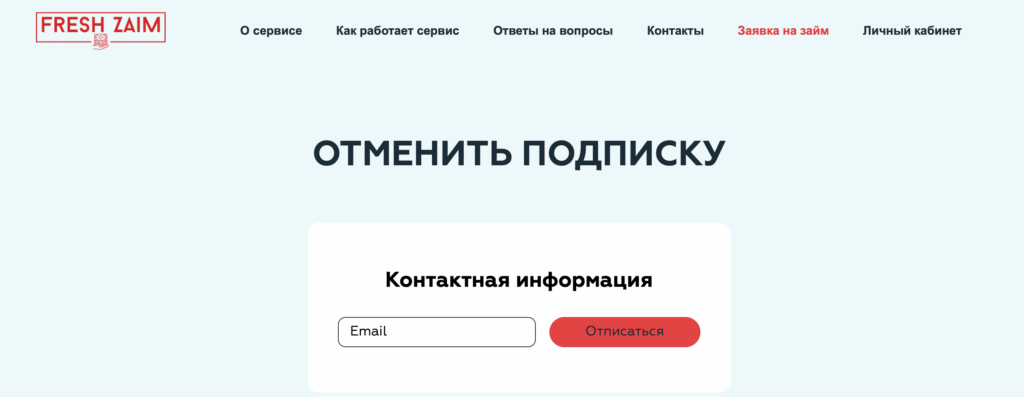 Отписка на сайте Свежий займ