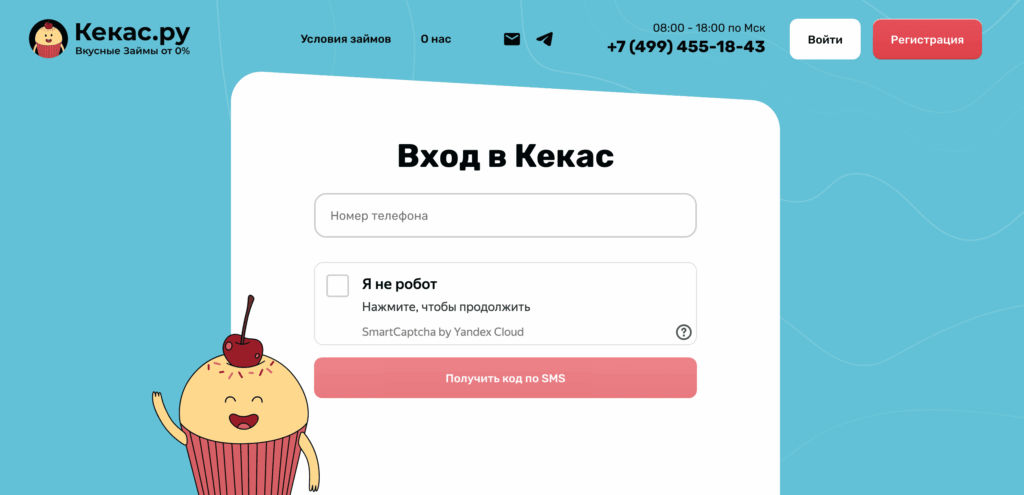 Для входа в личный кабинет Кекас используется номер мобильного телефона, указанный при оформлении займа. На странице авторизации необходимо ввести номер и подтвердить вход кодом из СМС. После проверки данных система автоматически открывает доступ к учетной записи заемщика.