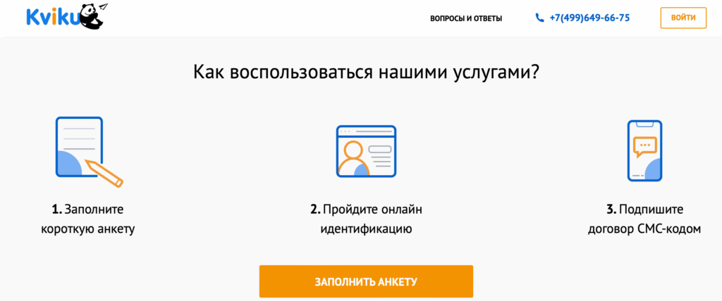 Kviku не использует сеть розничных отделений и работает исключительно в онлайн-формате. Это позволяет клиентам оформлять займы и рассрочки независимо от региона проживания, без необходимости личного визита в офис.