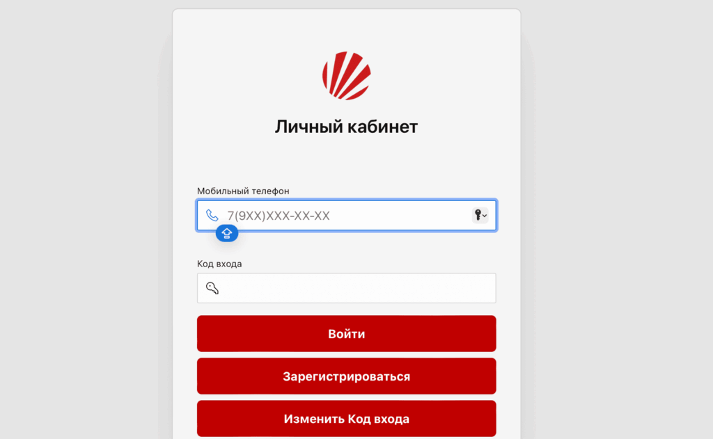 Для входа необходимо указать номер телефона, который был использован при регистрации, и код доступа (пароль). После ввода данных система предоставляет доступ к профилю пользователя. Если данные введены корректно, клиент сразу попадает в интерфейс личного кабинета.