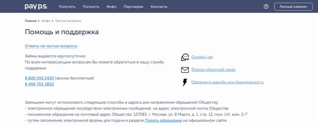 А также через онлайн-чат или форму обратной связи на официальном сайте компании.