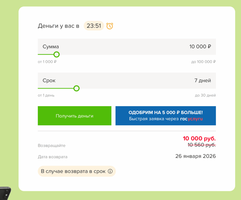 - оформлять заявку на микрозайм дистанционно;