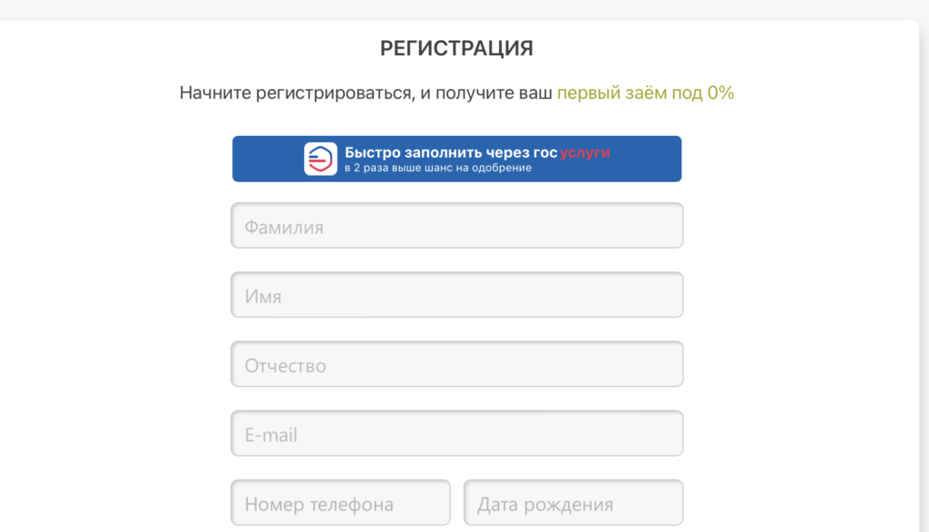 Регистрация личного кабинета происходит в процессе подачи первой заявки на микрозайм. Во время оформления заявки пользователь заполняет необходимые персональные данные, после чего система автоматически формирует учетную запись и открывает доступ к функционалу личного кабинета.